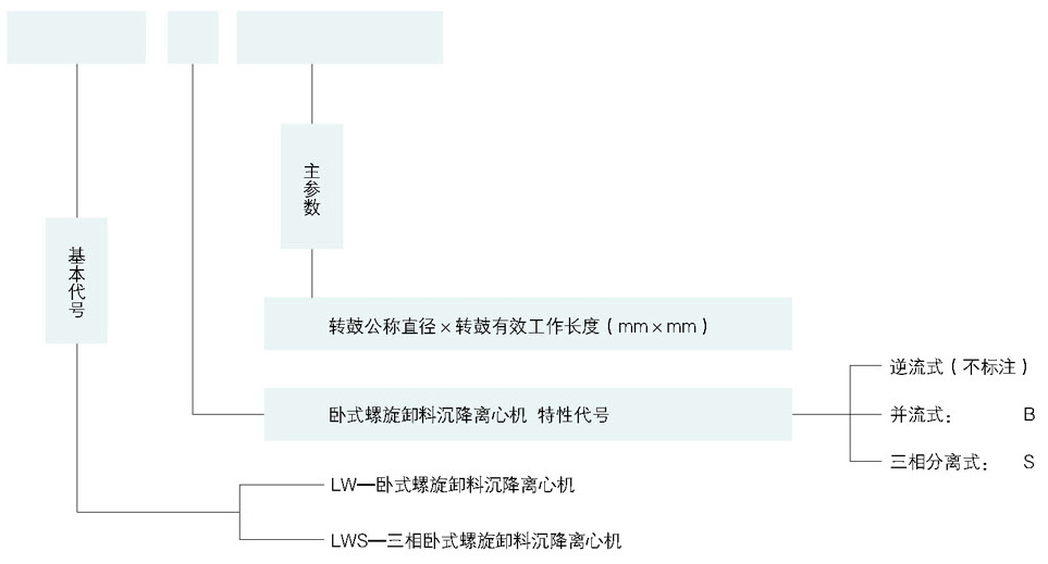 卸料沉降臥螺離心機(jī)的基本代號:Basic code names
